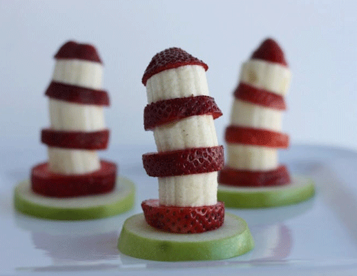 How to make it: Cut an apple, strawberries and bananas into ½-inch thick slices. Feel free to substitute raspberries, kiwi, pineapple and other colorful fruits. Layer them to make a sky-high_ Cat in the Hat _top hat!