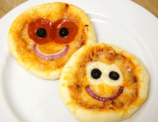 How to make it: Top mini bagels or English muffins with pizza sauce. Cut up some cheese and veggies such as olives, onions, peppers, broccoli or green beans and use them to create faces!