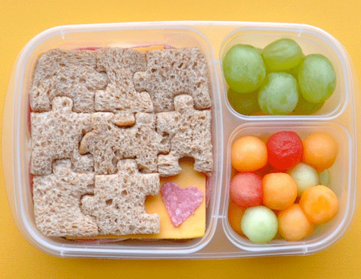 How to make it: After you make the sandwich, use a puzzle-shaped sandwich cutter (or some clever cuts with a knife) to make the puzzle. Jumble up the pieces so your child will have to put it back together!