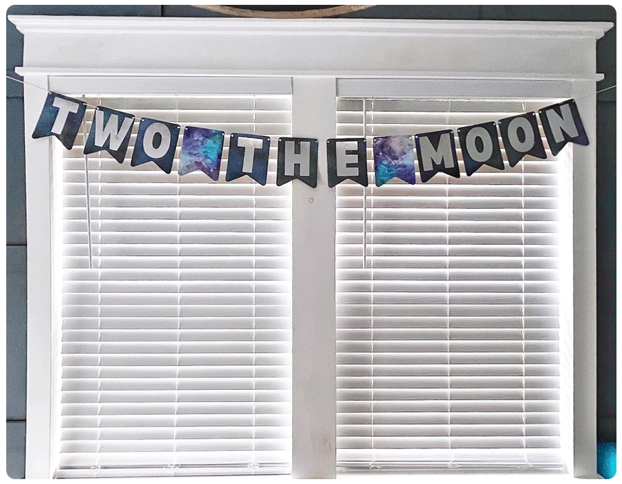 She decorated using a banner that spelled out “two the moon,” as well as with a centerpiece spelling out “two” in marbled-blue, black and silver. She also blew up silver “2” and martian balloons, hung up silver star streamers and created a balloon arch of black, blue, metallic and red balloons. She had a display piece, created by a loved one, depicting her son soaring in a rocket ship to outer space. For dessert, she stuck with the theme, using galaxy-inspired chocolate cupcakes and frosted cookies.