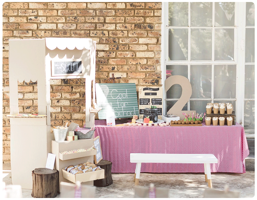 For party favors, she used chalk, play dough, star stickers, crayons and other popular recess toys. Plus, she constructed a book corner, filled with children’s books party attendees could take home with them. How cool is that?