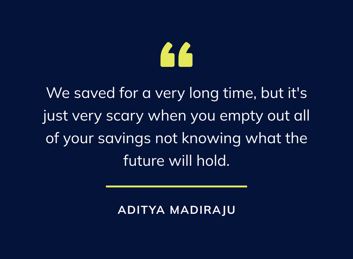 Aditya Madiraju: Definitely. I think the fertility journey—I don’t even know where it starts technically because, for us, it started almost three and a half years ago, when we went in for testing to see if everything was okay. It was quite slow for the first year and a half at least because we were in the middle of a pandemic and nobody was really working at that point. Then things started moving. This is our fourth try—there were three times when it did not work out, and every time there was a gap of two months, three months. It was just silence and waiting. Now the last month and a half has been a blur. I don’t have any idea as to how many weeks we’re pregnant because it just seems like every day there’s new news—the date has moved three times already. But we’re super excited.