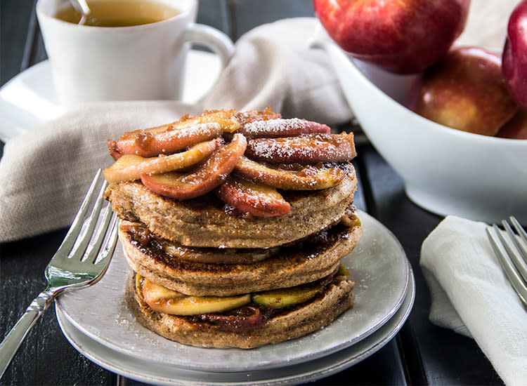 They look (and taste) super-decadent, but these seasonal pancakes from Food Fanatic have a healthy kick, thanks to the whole wheat flour, low-fat milk, yogurt and fresh apples, which are incorporated into the batter and used for toppings. The cinnamon, brown sugar and spices will fill your home with the aromas of a freshly baked apple pie and have your kids begging for a bite.