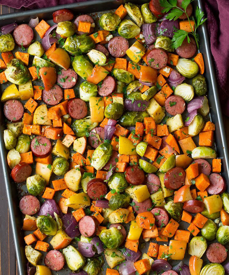 A brilliant trick to making meals in a jiffy? Throwing all the ingredients onto a single sheet pan and popping it in the oven. This colorful combo from Cooking Classy is full of autumn goodness, including apples, sweet potatoes, Brussels sprouts, sausage and other tasty additions. And since it’s all pre-chopped, it makes for great kid-friendly finger food.