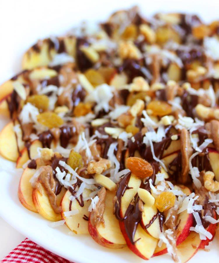 It’s fall—which means it’s not only apple-picking season, but it’s back-to-school season as well. This easy-breezy after-school snack (or healthy sweet treat) uses up a bunch of apples and provides the perfect brain food for kids. Start with a base of sliced apples, then load them up with toppings of your choice. This recipe from Lexi’s Clean Kitchen calls for nuts, raisins, nut butter, chocolate, coconut flakes and a special homemade caramel.