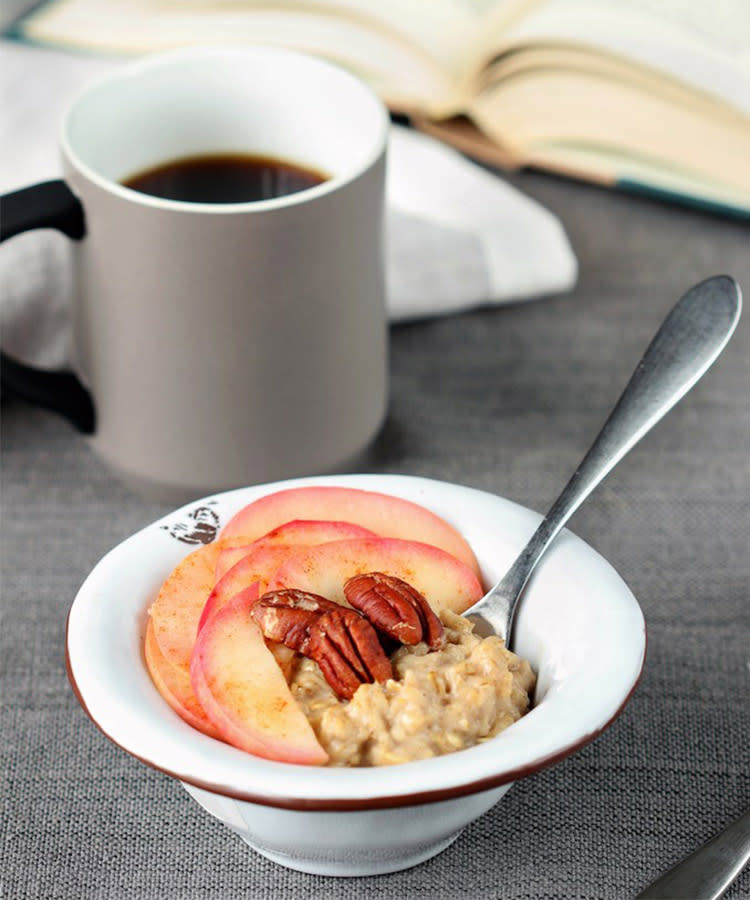 Oatmeal is a nutritious breakfast option for the whole family—but left to its own devices, it can get a little dull. Spice things up with this autumn-inspired recipe from Simply Sissom. It’s jam-packed with flavorful fall ingredients, like apples, cinnamon, maple syrup and a special pumpkin pie syrup. You can throw it together quickly, whip it up the night before or freeze the spiced apple slices for future meals.