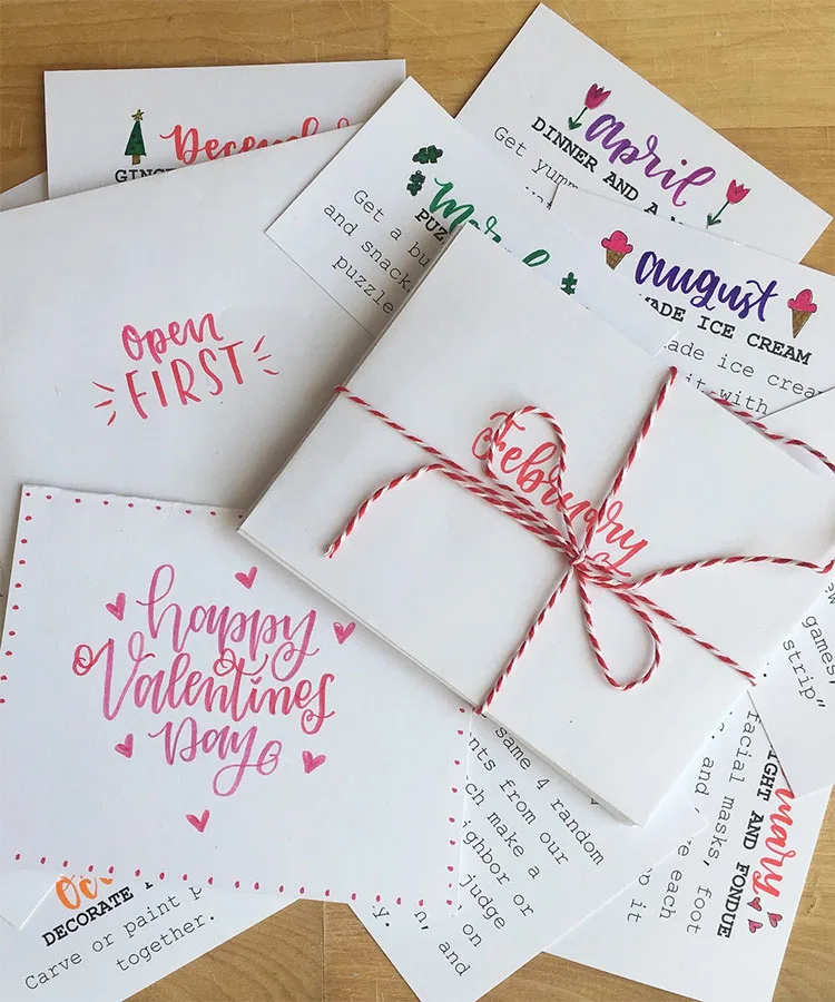 Buy it: SundayAftrnLetters 12 Months of At-Home Date Cards, $15, Etsy.com