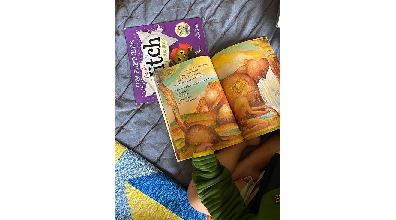 The Story Captain Mixed Book Club box came with three books: Two picture books geared towards older children (ages 3 to 6) and a board book (ages 0 to 3). The board book had high-quality touch-and-feel pages that my toddler (and even my older kids!) enjoyed interacting with as they read. One of the picture books had gorgeous illustrations and a pleasing rhyming narrative describing the changing seasons. The other picture book had a more playful feel that prompted the reader and listener to “pop bubbles” and “clear the page” with their hands.