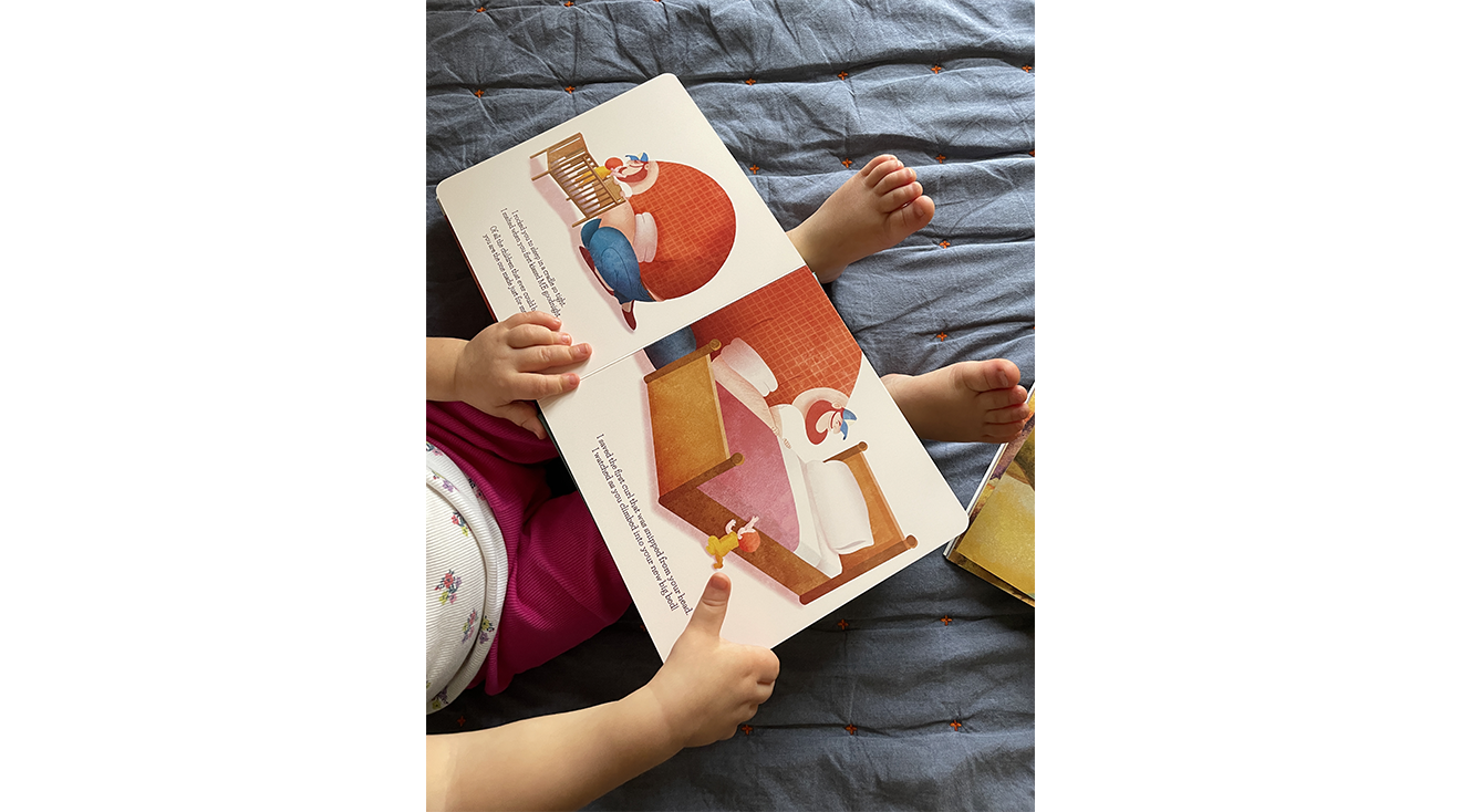 Each book in the Bookroo Board Book Club package has a decorative spine. As your Bookroo collection grows, the stories on your shelf will have a coordinating look. This unique detail stood out during testing; it added a lovely, cohesive look to the subscription’s contents. I think that this box would make an excellent baby shower gift. The books came neatly wrapped in a decorative box and the custom binding made it feel extra special.