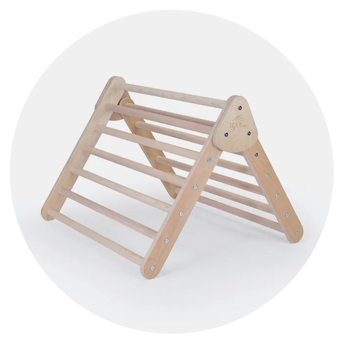 The Piccalio Mini Climber Pikler Triangle is a sturdy, foldable wooden climber designed for babies as young as 6 months to practice pulling up, standing, and cruising. The reversible rockwall and slide adds extra fun, encouraging little ones to explore and develop new skills, perfect for keeping them active during indoor winter days. Made from sustainably sourced birch plywood and New Zealand pine, it’s built to last and supports children up to 132 pounds, with a compact foldable design for easy storage when not in use.