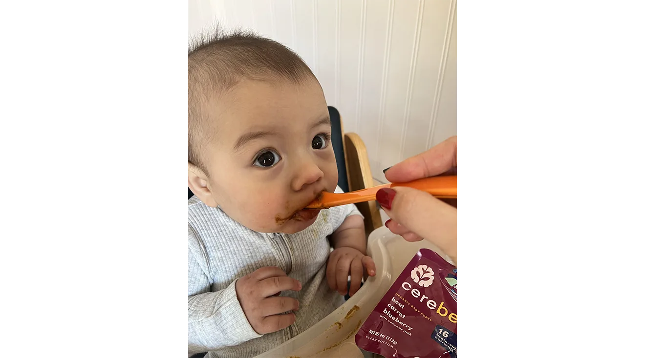 Cerebelly’s Puree Sampler Pack offers shelf-stable pouches that can be stored in the cabinet and effortlessly taken on the go. Our product tester Ally H. tested these pouches with her 6-month-old son and appreciated how practical they are for busy days. She noted, “the packaging makes it super easy to grab and go when we have an outing, and I'm able to feed him pretty much anywhere.” The shelf stability means there's no need for refrigeration, making it simple to always keep meals ready.