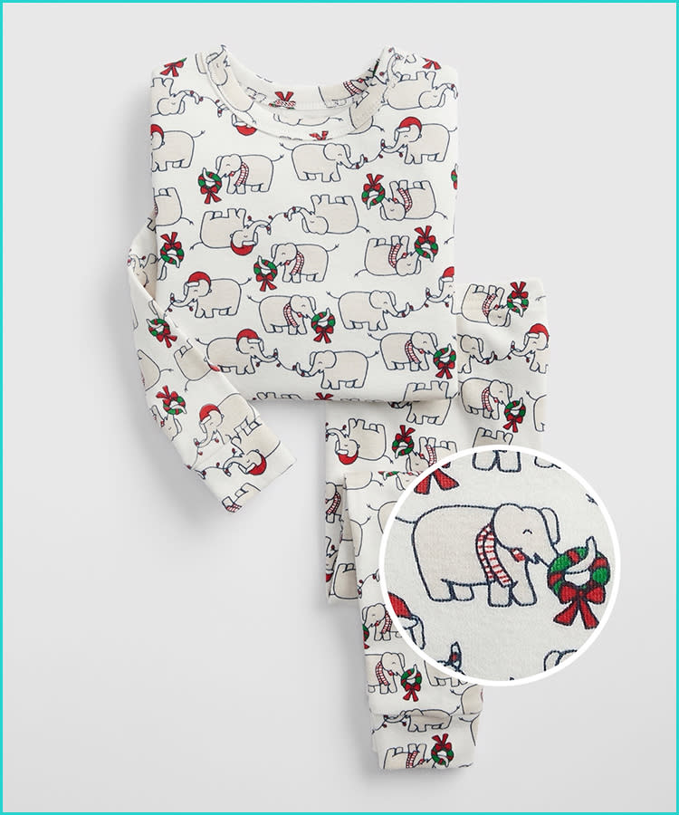 Wreath-carrying elephants set these two-piece toddler Christmas jammies apart from the pack.