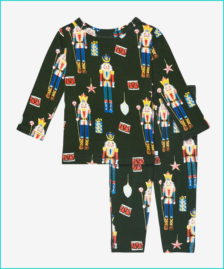 These baby and toddler Christmas pajamas come in two stylishly festive prints. They’re also made from snuggly waffle knit fabric, so they’ll keep your little one extra-warm.