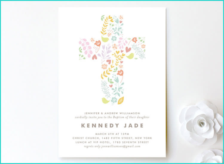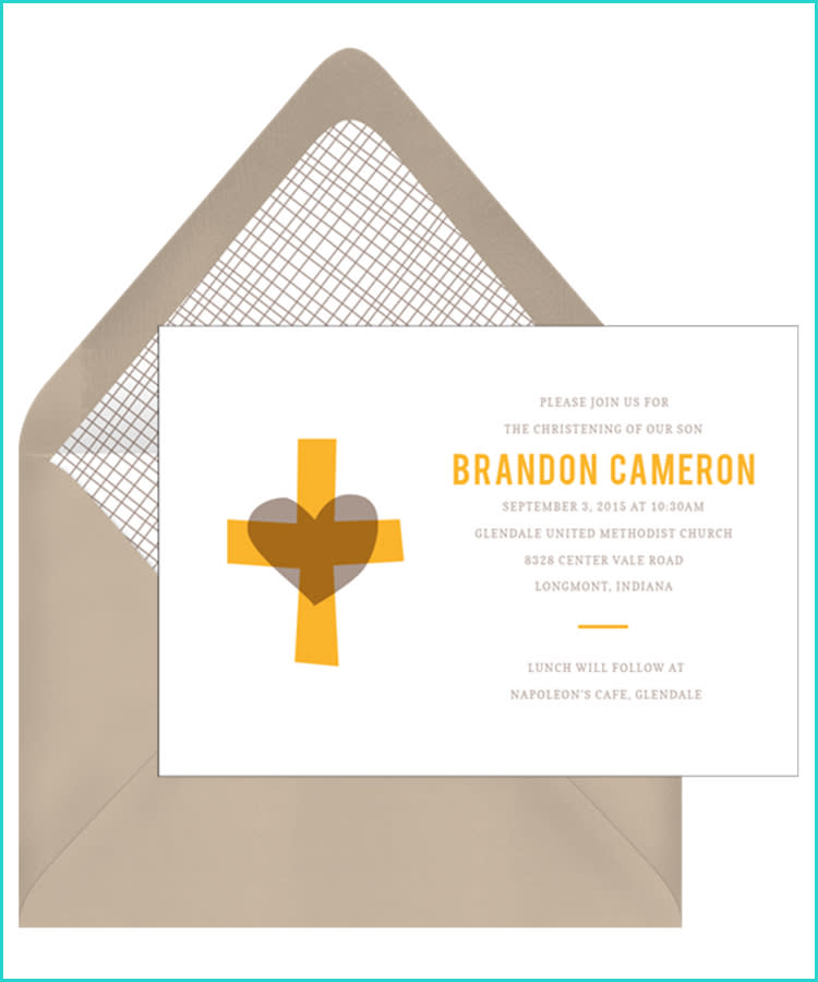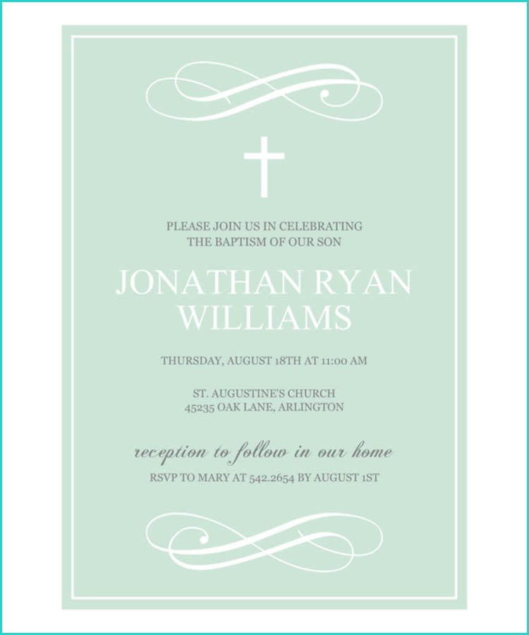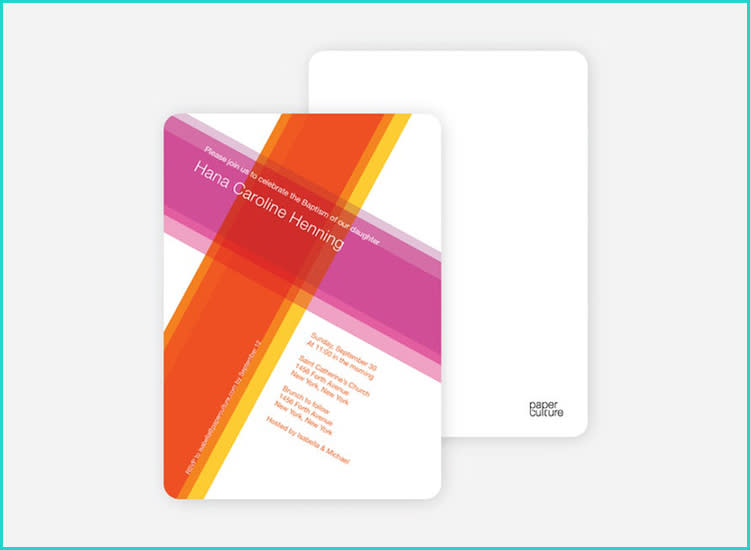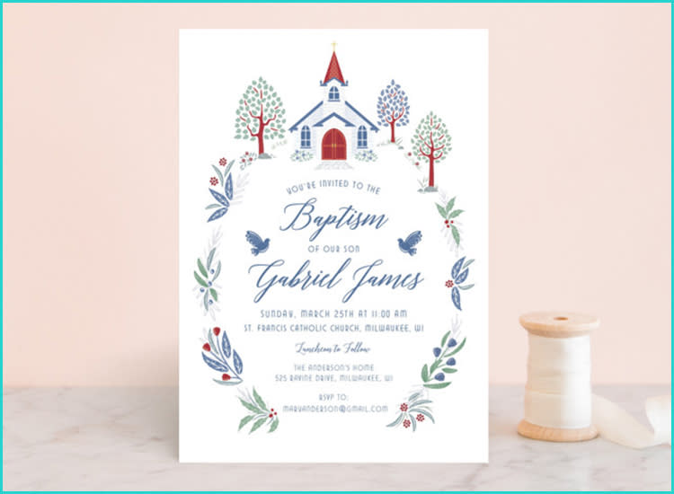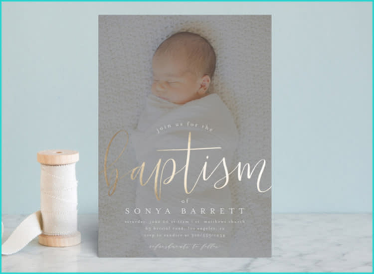 From there, the extras are entirely up to you. Use your baptism invitations to share any additional event information you’d like guests to know, like who baby’s godparents are or that they can skip gifts. Really want to spruce things up? The stationery experts at Shutterfly recommend adding a religious quote.