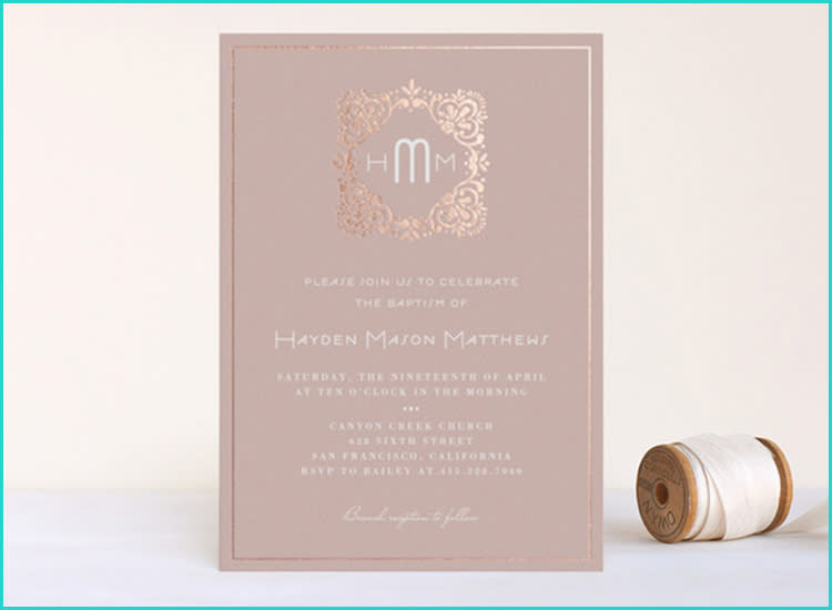 Luxe foil upgrades any baptism invitation template, including this monogrammed one.