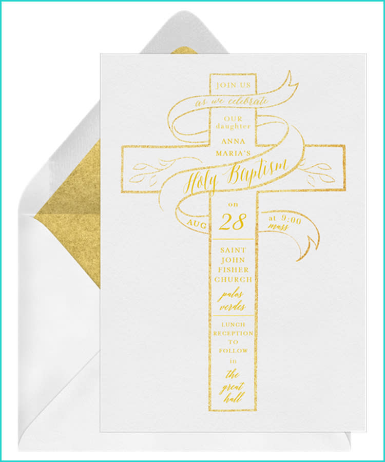 Searching for eco-friendly (read: paperless) baptism invitations? Try these Greenvelope cards which only look like paper goods—they’re actually sent over email.