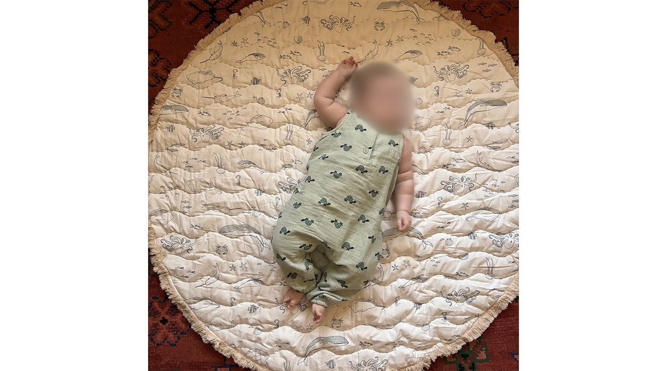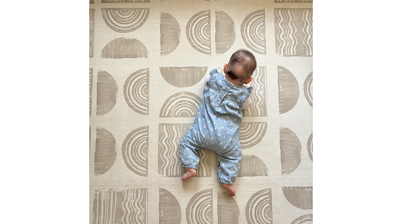 These mats aren’t just a delight to look at, though, the buoyant half-inch-thick mat is a dream to walk and lounge on. The non-toxic PVC memory foam feels high-density and substantial underfoot while offering enough give to cushion falls—and alleviate my joint pain from a years-old ACL surgery. In fact, I’ve gone from being unable to kneel on the floor with my daughter to crawling around on all fours since welcoming this mat into my home. While my 3-month-old daughter can’t exactly tell me that she thinks the mat is nice and cozy, she has flopped around on it and even had an accidental head bonk or two without any tears. Now that she’s starting to roll, I like to put this mat under our play gym to extend her play area and pad any unexpected movements.