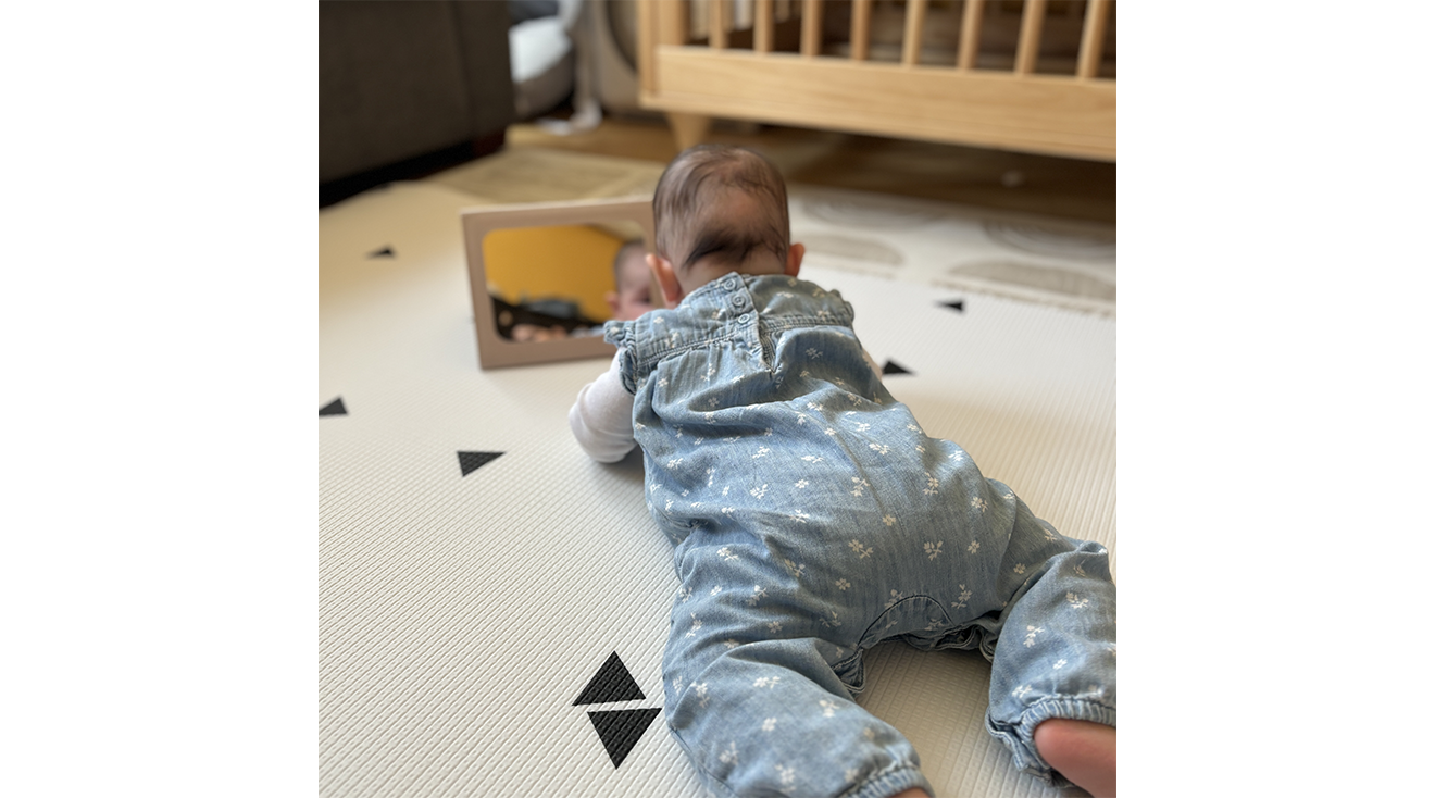 “My daughter really enjoys this gym, and it seems like every time we play on it there's something new to explore or discover, whether it's looking around at the high-contrast tent or practicing tracking with one of the removable sound squares.”
