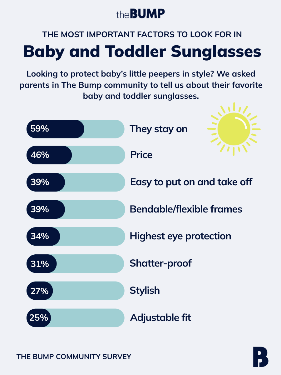 We asked our survey respondents to weigh in on the most important features to look for in baby and toddler sunglasses, and this is what they told us: