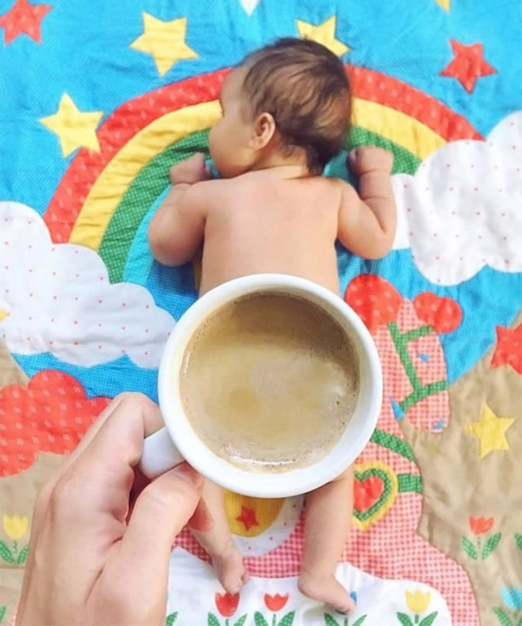 Caffeine is a parent’s lifeblood, so it’s no surprise coffee butts are cropping up all over Instagram. These cute shots are simple to create–just lay baby belly-down on a cute blanket, grab your cup of joe and carefully hover it above baby’s sweet tush! Since there’s rarely a moment you’re without a coffee in hand (are we right?), this is an easy trend to recreate on the fly.