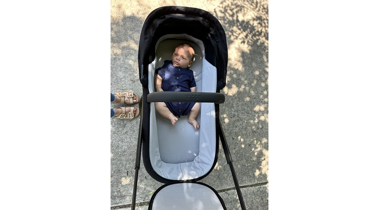 The carrycot—aka bassinet—is sold separately and features a breathable mattress and easy-open, see-through ventilation panels in the hood to help airflow. “The fabric and lining on the bassinet was great quality, but it is a bit thick,” notes Tandra, who lives in Texas and tested the bassinet stroller on some hot days. (Even with good ventilation, this is where a stroller fan comes in handy!) Overall, Tandra liked the bassinet attachment and felt it was well suited for walks with a newborn. “My baby had a smooth ride and enjoyed the stroller,” she says.