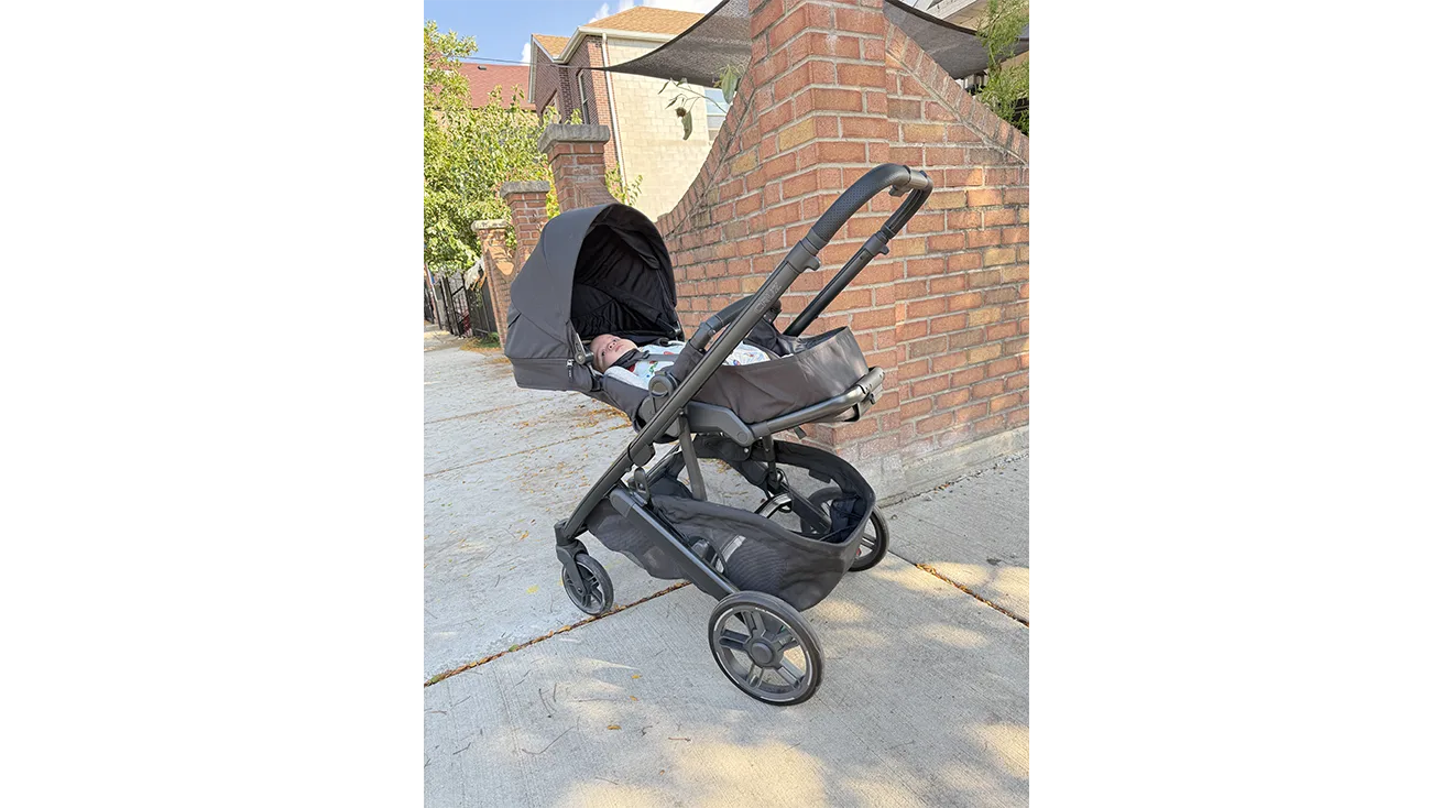 When it comes to bassinet strollers, a smooth ride is everything—after all, you don’t want your newborn bouncing around or waking up when the terrain gets rough. The Cruz V3, the latest version of this UPPAbaby favorite, features an upgraded all-wheel suspension system that delivers comfort across a range of terrains, making it a parent and staff favorite. “I think the easiest way to describe it was an airy feeling when pushing it,” says our tester Erin P., a mom of four including a 2-month-old, who found the stroller easy to push and steer on uneven sidewalks, grass and gravel trails.