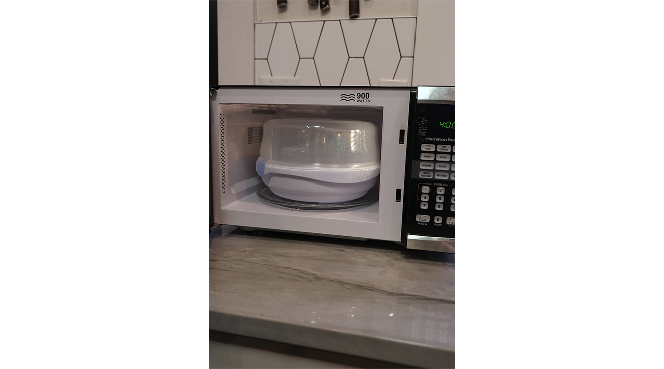 They’re simple to use but if you ever forget exactly what you’re supposed to do, the directions are printed right there on the bag. Here’s the gist: add two ounces of tap water to the bag, place the items inside facing down, seal it and microwave for the recommended time based on your microwave’s wattage—anywhere from five minutes to as little as 90 seconds. Since the bag doesn’t have a fill line, bring a measuring device or set aside a clean bottle to measure the water.