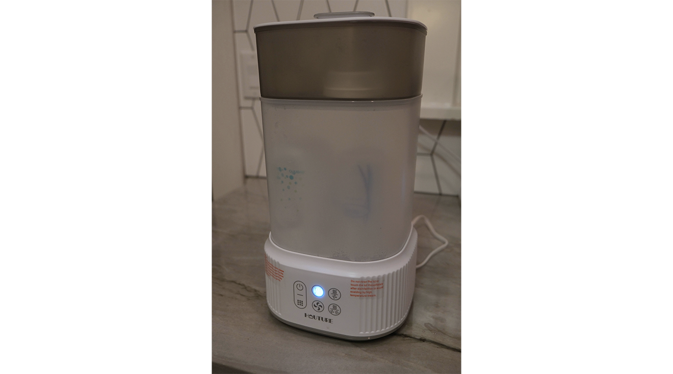 While the sterilization cycle takes a minute longer than two other units I tested, I like that it uses tap water rather than distilled. (This device uses 4.5 ounces of water per sterilizing cycle, so if it were to require distilled water the costs would add up over time.) The manual doesn’t mention a cool-down period, but I recommend waiting 5 to 10 minutes after the cycle finishes before unloading it, as the baskets and items become very hot and a lot of steam is released. Alternatively, you can leave the lid on and the bottles will stay sterile for up to 24 hours. The dry cycle was efficient and effective. However, skipping the dry cycle left standing water in the bottom of the unit. Removing the bottle compartment before the heating plate cools completely also caused the water to sizzle and leave brown spots on the plate. Fortunately, the plate wiped clean with a soft towel, and I didn’t come across reports of long-term mechanical issues. Still, the included two-year warranty is a nice reassurance.