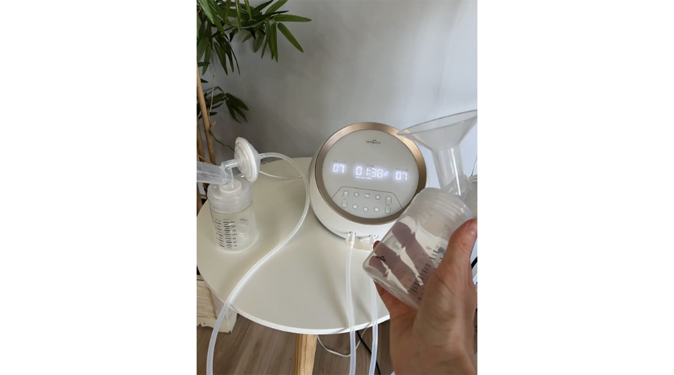 To put it lightly, the Spectra brand has been loved by members of the lactation community for years. In online pumping forums, you’ll see moms hyping this pump up for its dual motors and independent adjustability, and I can see why. Turning the pump on, my first impression was that it was super high-tech. It has a user-friendly touchscreen, and there are buttons and settings for just about everything. Some of these include vacuum and vibration strength, settings for how fast you want the cycle of each pump to be and a stimulation mode. Then, of course, you can customize these options for your left and right breasts individually. You can really personalize the experience to your specific needs.