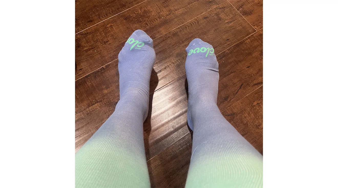 Comrad socks were a little tricky for Erin to get on at first, but once they were on she found the fabric breathable and easy to wear without overheating. “I casually wore them around the house all day,” she says, adding, “the fabric was so light my feet didn’t feel hot or itchy or anything.” Erin calls these socks her favorite pair of all the ones she tested, and tells us, “I would definitely recommend them to anyone experiencing severe swelling who wants a pair of socks they can wear every day.”