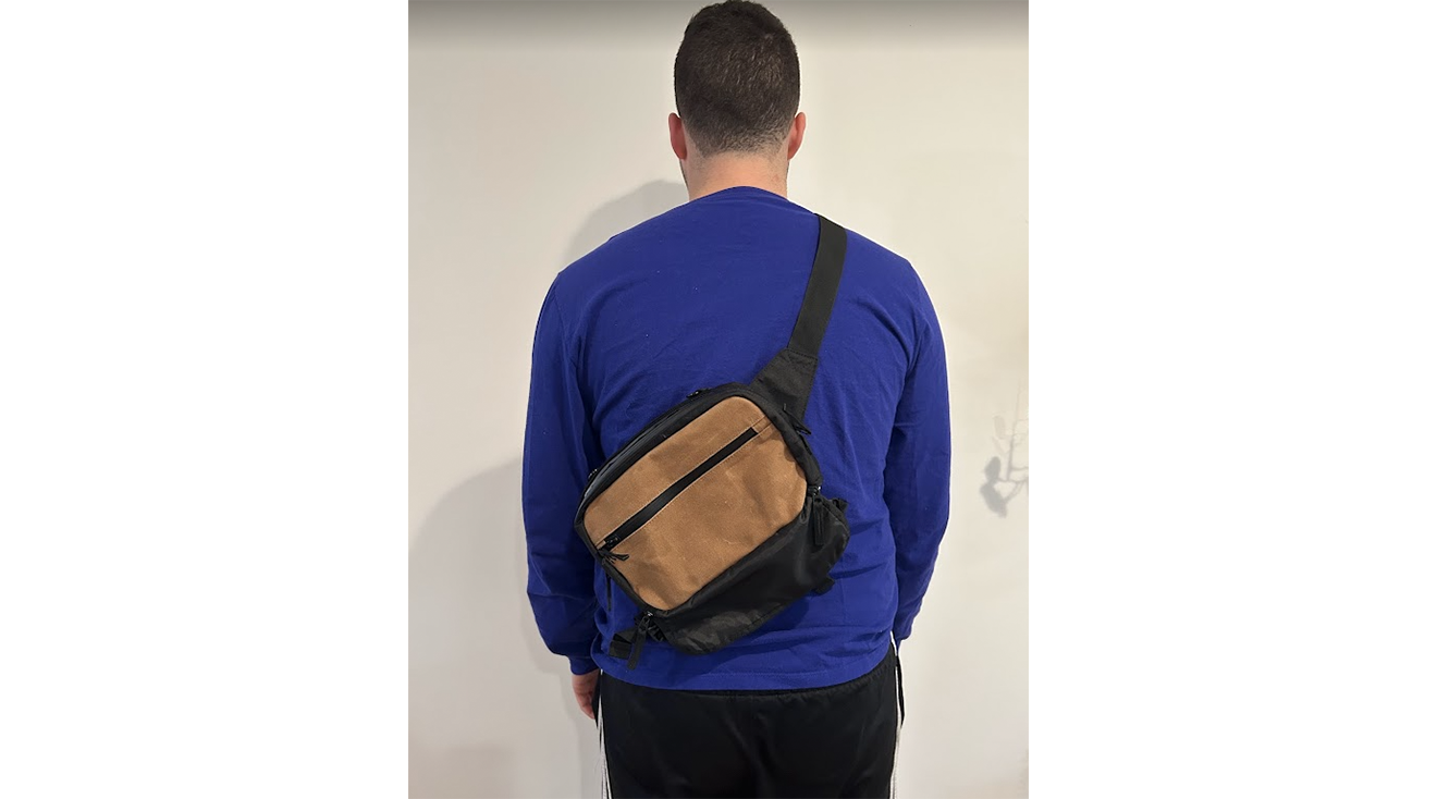 Right off the jump, I loved the design of this belt bag. The rustic color and material is exactly my style, and nothing about this trendy bag screams “diaper bag,” which makes it a versatile hold-all for dads. I would be just as likely to take this to a music festival or a solo hike as I would on a trip to the playground. The style and function of the straps are also great, especially the magnetic buckle, which takes some getting used to, but is awesome once you do. This bag was comfortable to wear both as a hip bag and across the shoulders, thanks to a thick layer of padding on the back. This is definitely a style of bag I would wear all the time, and while I've never been a fanny pack person, this bag could be the one to convert me.