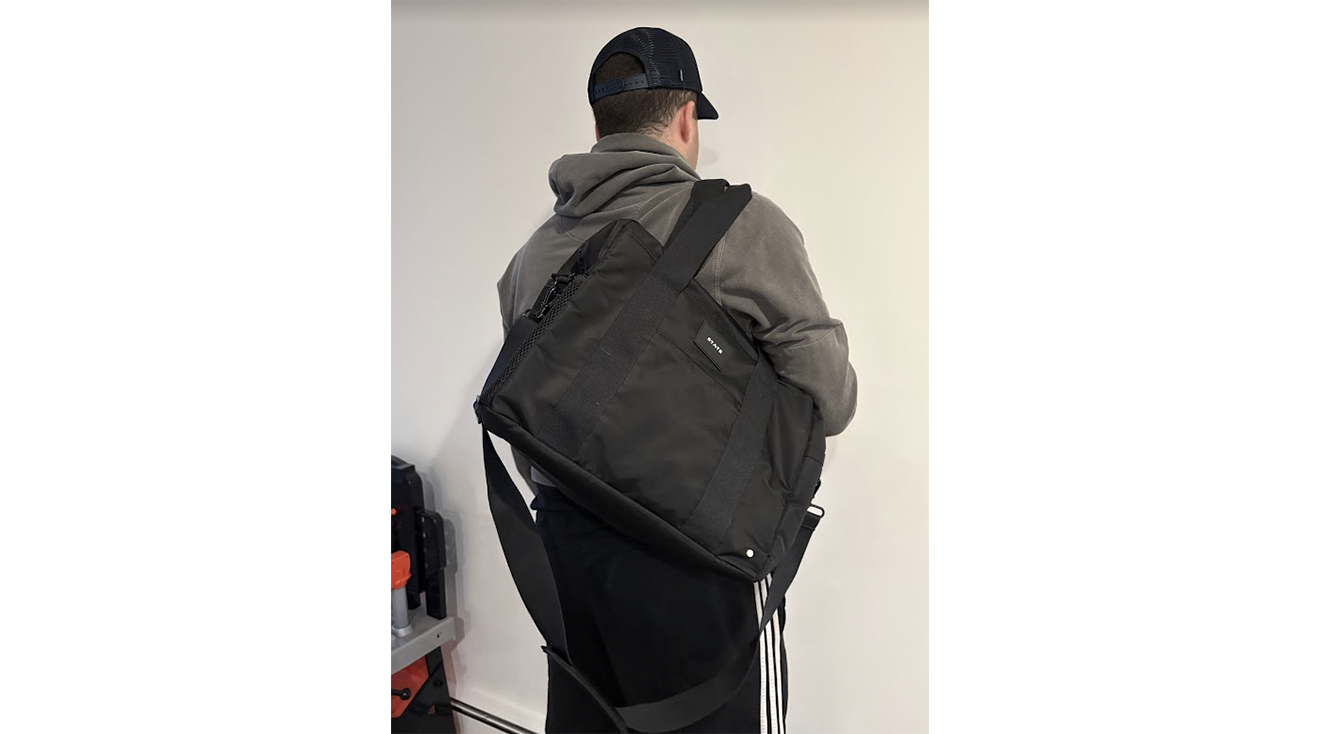 The polyester bag definitely has a premium feel throughout. Everything about it feels high quality, from the tight stitching to the durable material. This bag was placed on the ground multiple times, and it was easy to wipe off any dirt or mud. I felt like it could handle anything, and I noticed zero defects while using it. The material is water resistant, and while I never wore it in the rain, I tested it out with some water from my bottle and it held up great.