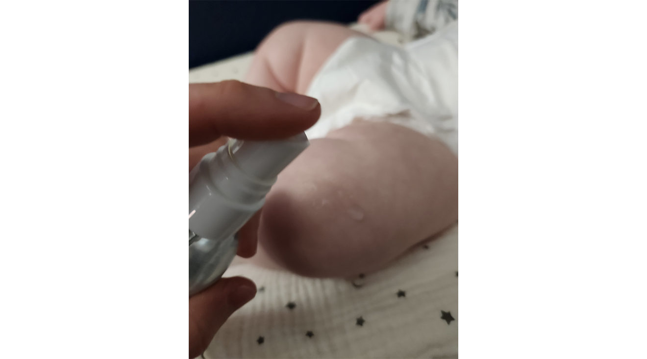 During testing, I found that the bottle does a fabulous job at targeting the area you want without mist flying in all directions. Once it was sprayed on, it quickly absorbed and was barely noticeable to the naked eye. But even so, it was reassuring to know it was killing the harmful germs that may have been missed by the baby wipe. I was also a big fan of how the HYP03 spray’s consistency felt like water. There was no grease or stickiness and it barely even left a trace of residue when blotting it dry. Plus, it didn't leave baby's diaper feeling moist.