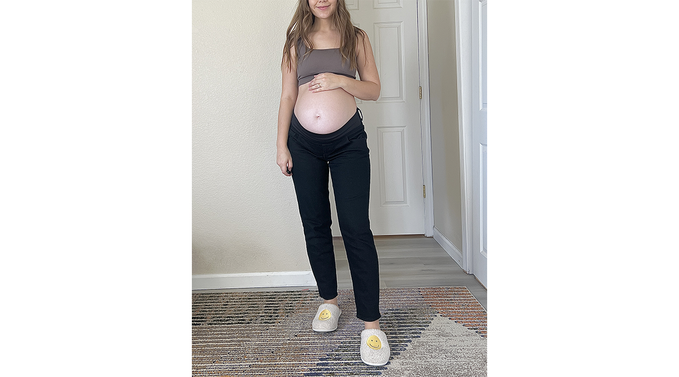 These were far more comfortable than most maternity jeans (or even regular jeans for that matter) that I’ve worn. The soft cotton denim had plenty of stretch and fit my body like a glove. Plus, the side panels seemed wider than other maternity jeans which gave my bump more room to breathe, and the waistband sat comfortably just below my natural waist. I didn’t experience any discomfort, irritation or awkward looseness after wearing these all day. And, as a mom who’s always on the move, I could squat down to play with my kids, be in and out of the house running errands and lounge around in these jeans as if I were wearing leggings. My bump still has quite some growing left to do, but I’m confident that the side panels along with the flexible waistband will allow plenty of room for growth. Jeans that are cute, comfy, and can last until the very end of pregnancy? That’s a major win in my book.