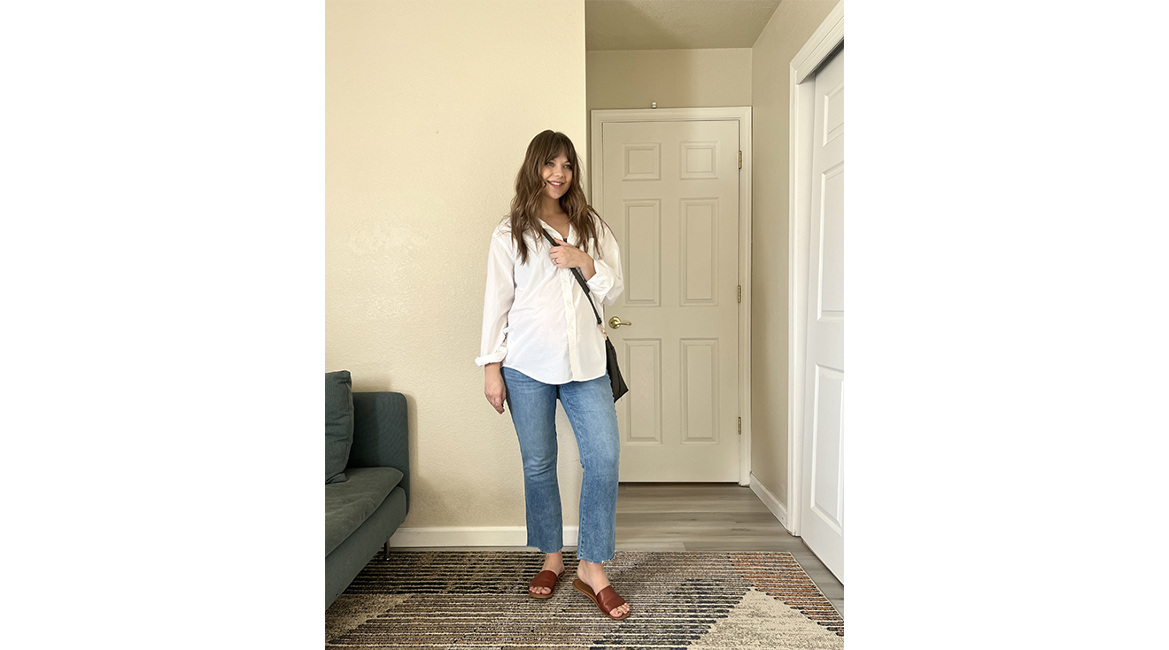 Due to the fitted look and cropped length, I decided to order a size up from my regular pre-pregnancy size, and that was definitely the right move. The jeans were perfectly fitted through the hip and thigh and flared from the knee down. The cropped look was very evident, with the flare ending just above the ankle. Normally, I would never have the courage to wear a crop-flare, but I’m so glad I got the chance to. They fit like a dream and were easy to style. A simple combination of a white button down shirt and brown sandals became a chic ensemble once paired with these jeans.