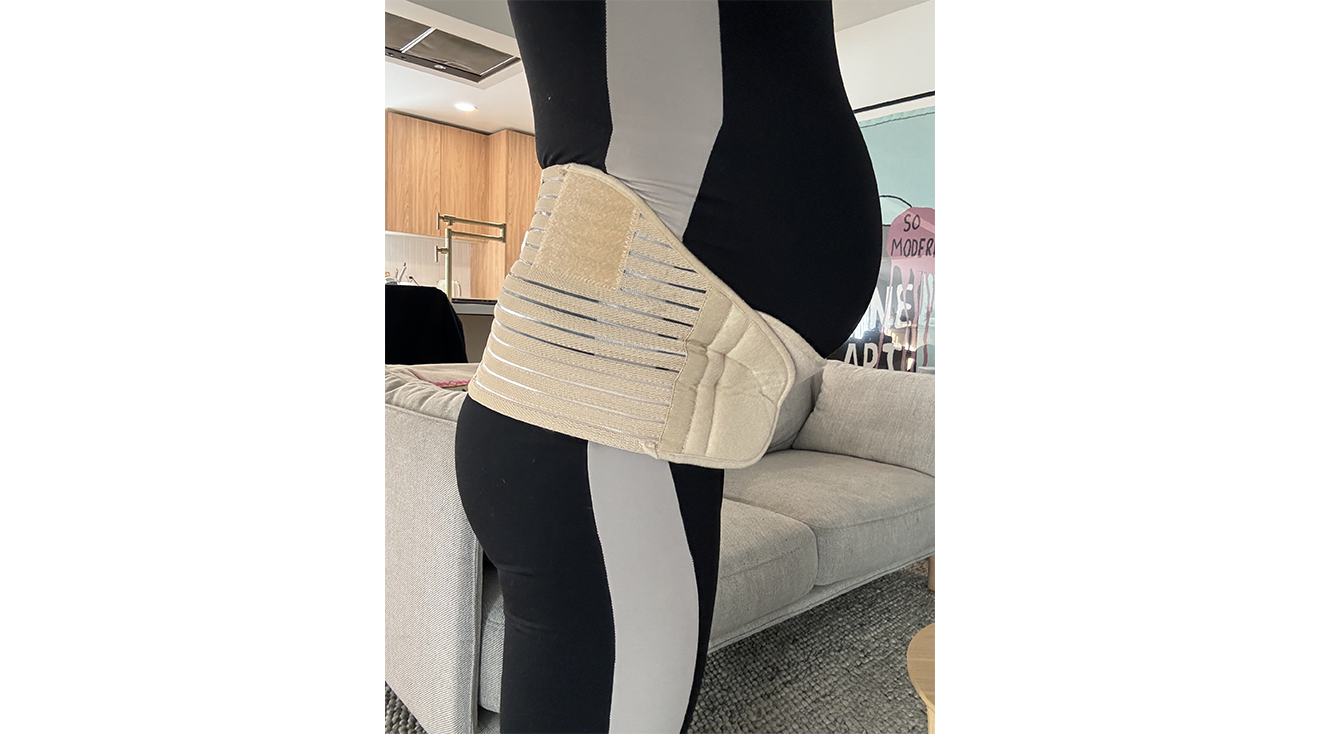 The band’s adjustable Velcro fastener provides a snug, customizable fit, while the breathable, soft materials ensure that it stays comfortable throughout the day. As Nina says, “It’s been very comfortable to wear—half the time I forget I’m wearing it.” She found the band especially useful for alleviating discomfort during her workday, saying, “I’ve had all kinds of pain since about 20 weeks pregnant. The extra support of the belly band really helped alleviate some of the pain, especially when I wore it to work.”