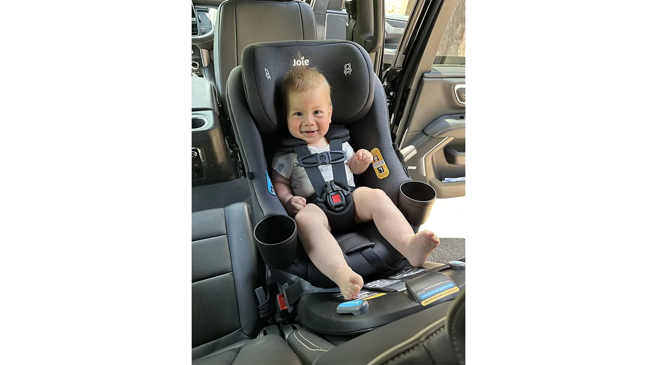 Another reason the Joie Chili stood out as a great option for families on a budget is that it’s well-suited to a variety of ages. Shelby tested it with her three kids and found that it worked well for all of them. “My 4-year-old (forward-facing), 3-year-old (forward-facing) and 10-month-old (rear-facing) all fit comfortably in this car seat,” she reports. “This car seat’s adjustable harness height and crotch strap make it very easily customizable to fit my children.” She did point out that her 3-year-old (who’s only in the 50th percentile for her height) felt squished in the rear-facing position. But all in all, Shelby recommends it to other parents, especially those with infants and toddlers. “The spin function is particularly helpful when buckling rear-facing children into smaller vehicles. The seat is a great value for money,” she says.