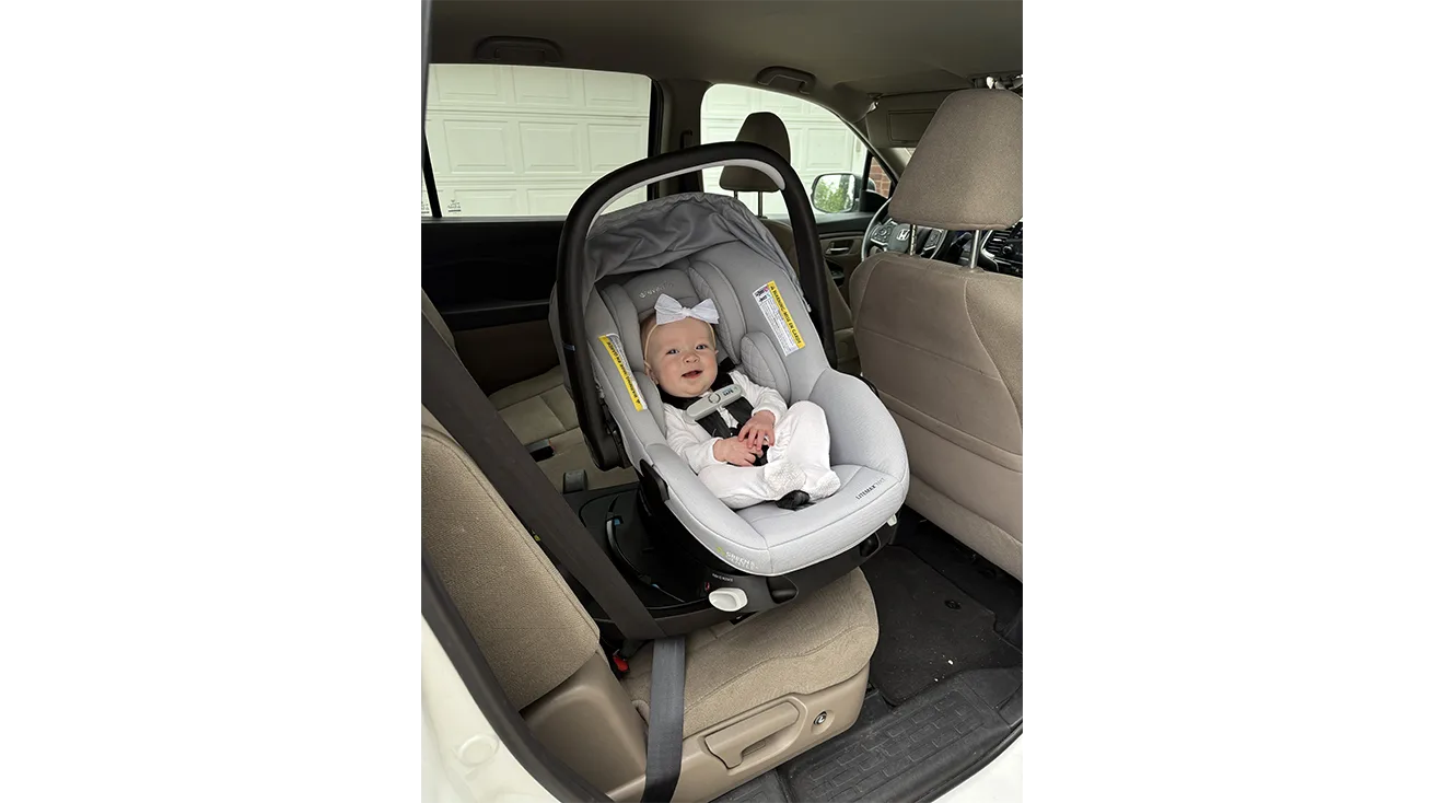 Shelby loved how smooth, effective and easy to use the rotation feature is. “Getting my 25-pound 10-month-old in this car seat was life-changing. The spin function makes it so easy to safely set him in the seat, buckle, spin and lock his seat rear-facing. I don’t have to worry about awkwardly holding him and placing him in the seat while straining my back,” she praises. To rotate the seat, simply pull the 360-degree handle on the side, turn it to your liking and you’re ready to go.