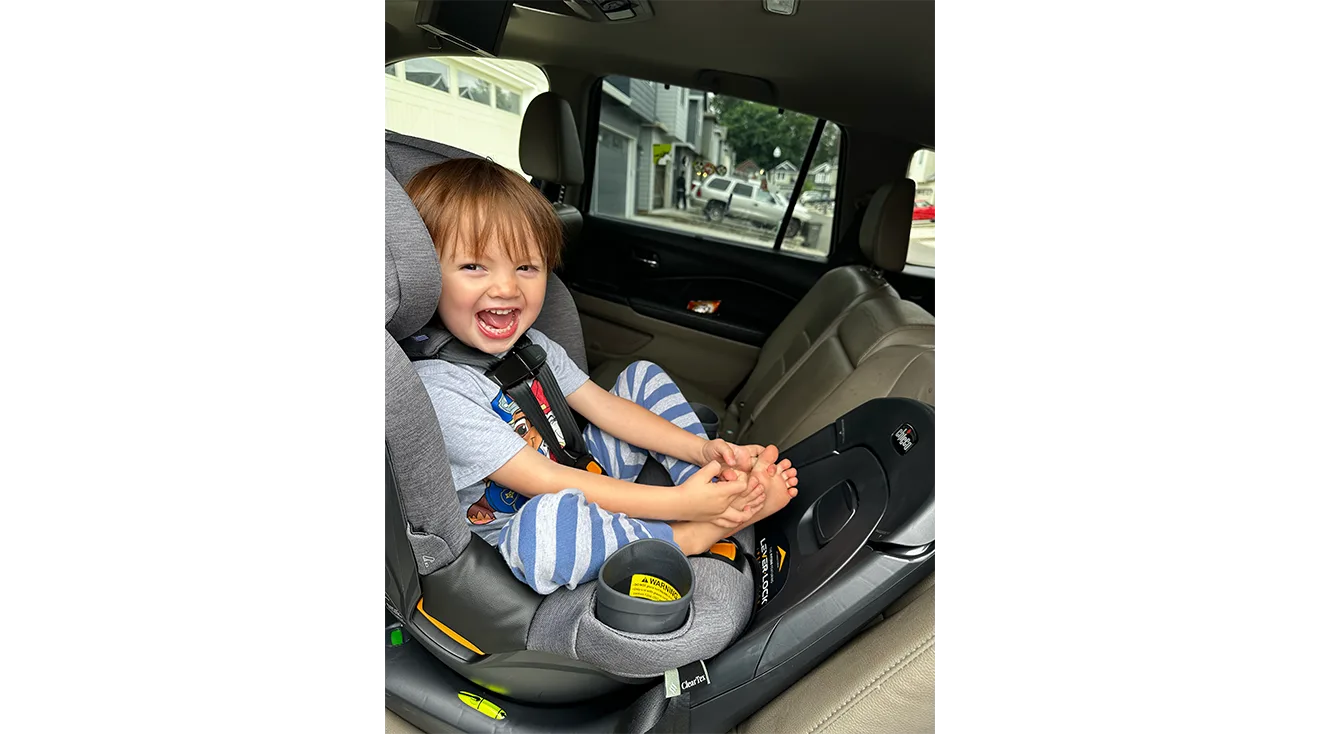 According to Christine, setting up the Cybex Callisto G 360 couldn’t have been easier, thanks to its SafeLock System, a panel that secures and tightens LATCH systems and seat belt paths. In fact, installing the seat in both rear-facing and forward-facing positions with the LATCH system took her less than one minute. “I’ve installed a number of car seats over the years, and this one was definitely one of the easiest and straightforward,” she praises. Due to the 12-position adjustable headrest and harness straps, adapting the seat for use across multiple children is also a breeze. “Adjusting the harness height between kids was simple thanks to the no-rethread system—I just pulled up on the headrest to reposition it, which took only seconds,” Christine shares. Though her tall 3-year-old felt a bit cramped in rear-facing, he was very comfortable in forward-facing mode. Meanwhile, the rear-facing position was ideal for her 11-month-old. “The recline angle felt appropriate and supportive for my baby. I typically keep my kids rear-facing until around age 2, and I think this seat is a great fit for that age range,” Christine says.