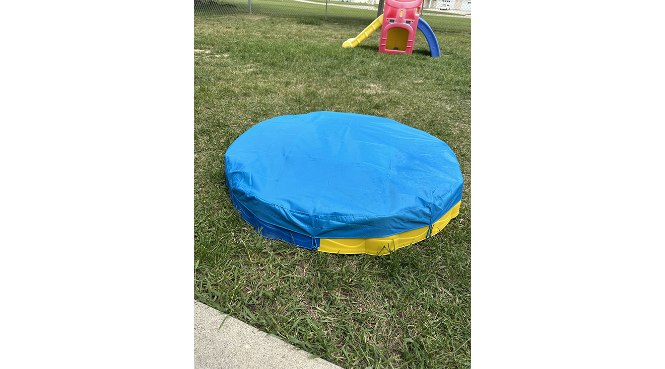 When playtime is done, simply hook the waterproof cover to the bottom of the box. “The cover is very tight and I feel like it protects the sand box really well,” shares McKenna, who described it as a water-resistant fabric that feels similar to a soft tarp.