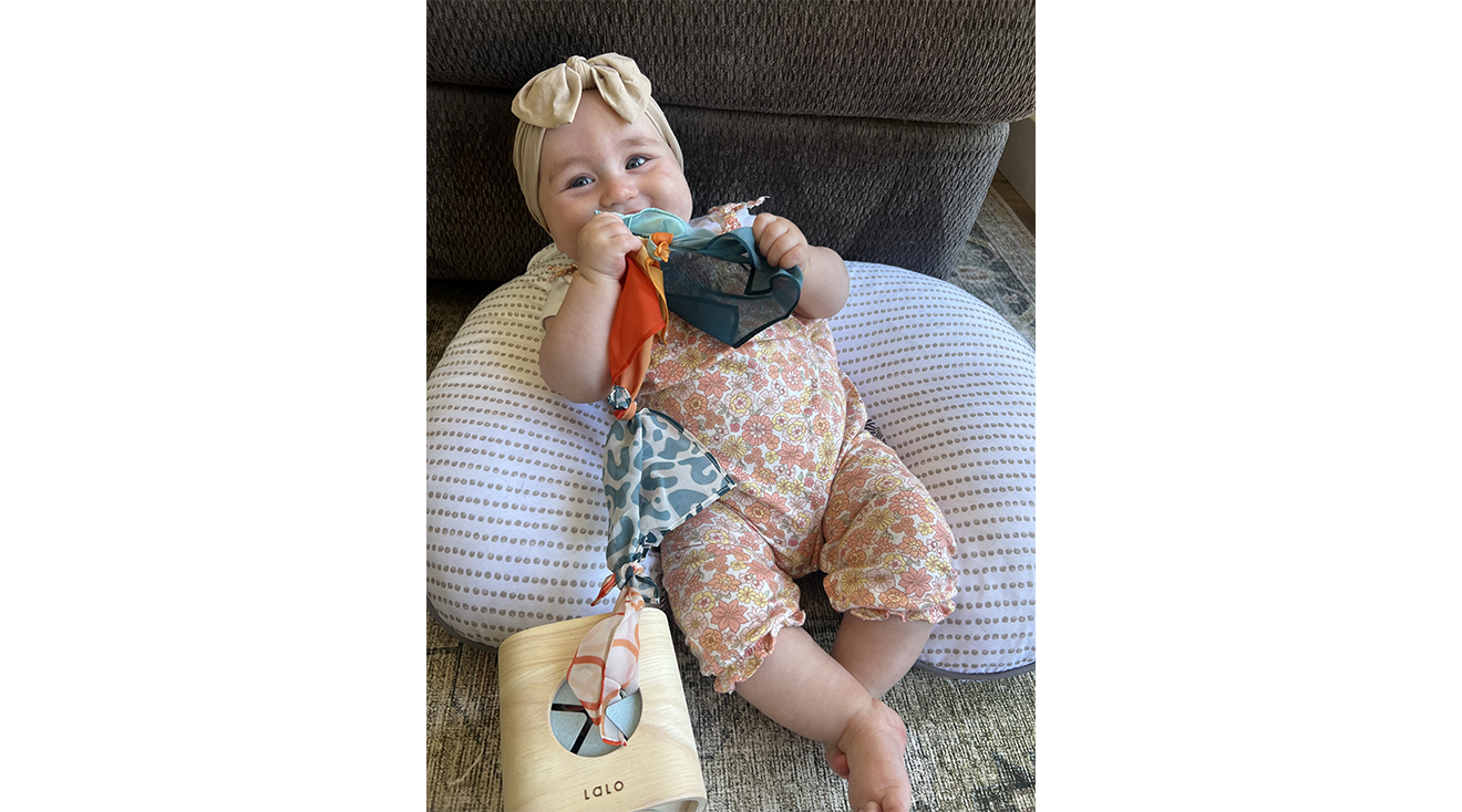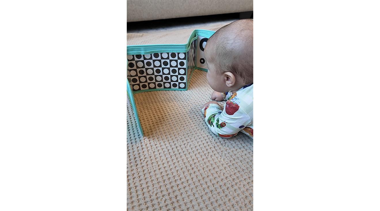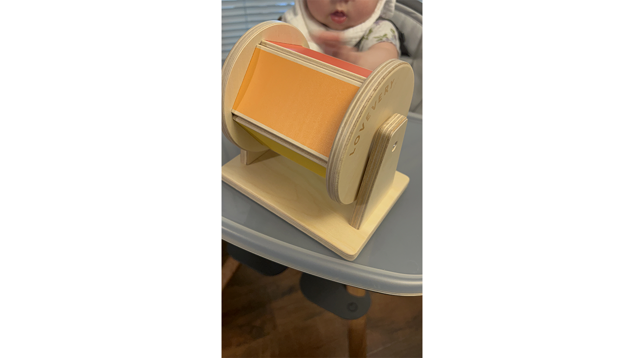 Each play box comes with four to six toys that are meant to help your child thrive in a specific developmental stage. Even the youngest players can find value in the early-stage toys. After all, building neck and core strength through tummy time is so important for young babies so anything that can reduce those heartbreaking cries is essential. Tester Erin P. agreed, and loved using the play box contents with her 8-week-old, saying, “The vision cards with different contrast was an easy one! I loved using them during tummy time.” Plus, some toys were engaging enough for her to fill the gap between naps. “I used the crinkle book if I need some extra time before his next feeding or wake window.”