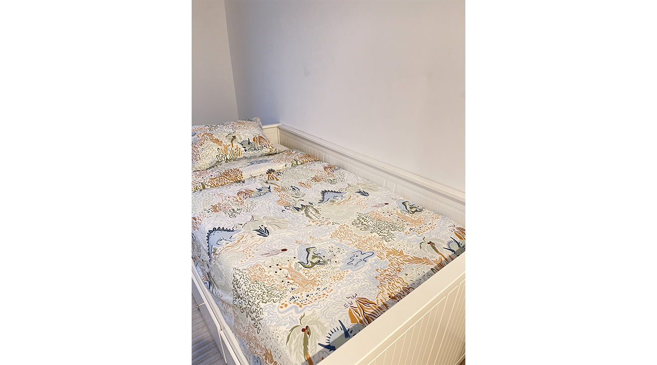 Specifically designed for convertible cribs and toddler beds, the comforter and fitted sheet fit Kimberly’s son’s bed perfectly. While the standard-sized pillowcase was a bit big for her toddler’s pillow, she appreciated the envelope-style closure. She felt the set created a safe, cozy sleep environment for her son, and the colorful truck pattern was an added bonus. “The bedding design is perfect for toddlers,” said Kimberly, “My toddler is really into trucks right now so he was so excited when I put it on his bed.” To top it all off, Kimberly told us that her 2-year-old loved the set so much that he “even asked to get in his bed before bedtime to spend more time using his new bedding”—which toddler parents will know is nothing short of a miracle.