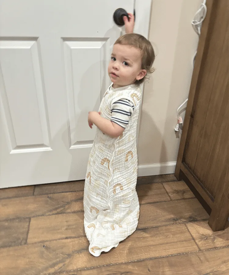 While my toddler did well with this sleep sack during naps and bedtime, there are a few drawbacks. It’s quite oversized, which is an intentional design feature, so that your child has room to grow into it. But as a result there’s a lot of extra length, which created a tripping hazard during early morning movement. And while the zip guard protects well, it can make it tricky to get the zipper started quickly—something to keep in mind if your toddler is squirmy (like mine!)