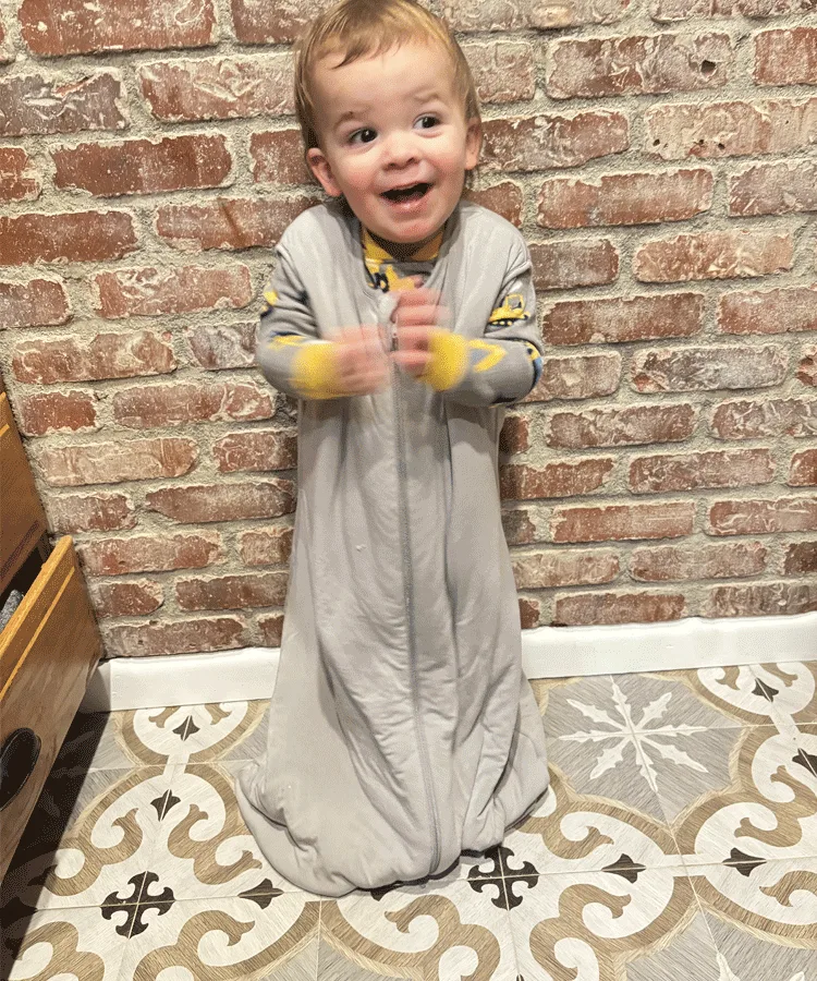 My 22-month-old son had full freedom of movement in this sleep sack, walking and playing comfortably before bed and in the morning. The two-way zipper glides smoothly without catching the fabric and makes diaper changes quick and simple, although it was a bit louder than others I tested. It’s also incredibly easy to get on and off, even with a wiggly toddler.