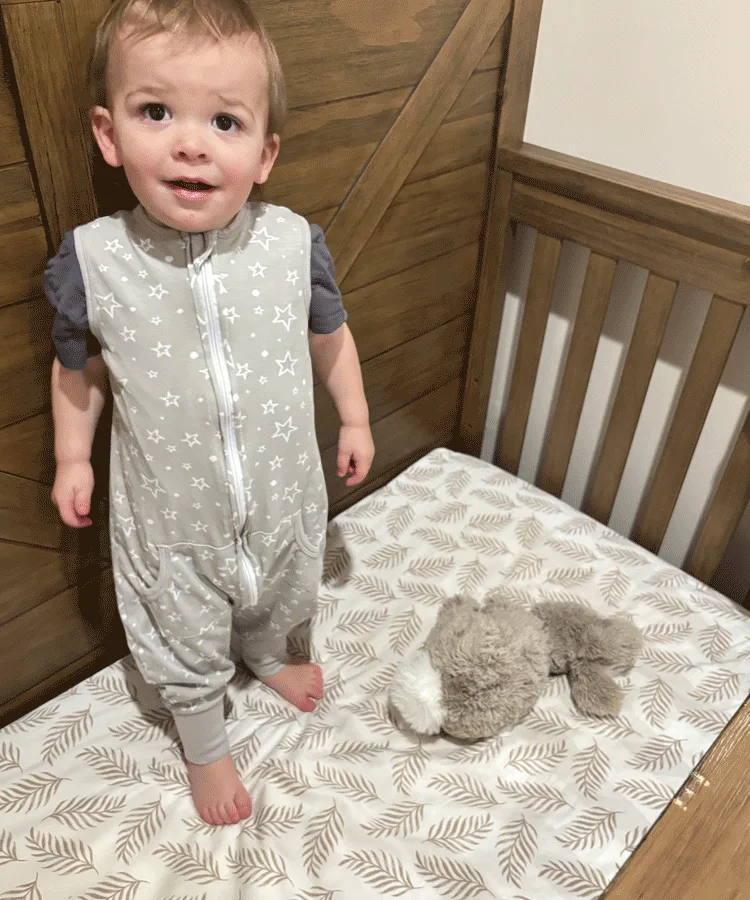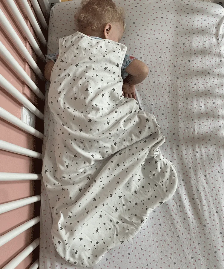 There isn’t a specific age at which toddlers should stop using sleep sacks. That being said, “it typically makes sense to transition them away from the sleep sack around the time that they transition to a bed (which is usually around the age of 3 years old),” explains Thistel. For some little ones, this change may take place earlier if the sleep sack is no longer working for them—while others may take longer to part ways with their wearable blankets. Thistel reassures parents that the process will be unique for each kiddo. “We have 3 children (including twin toddlers), our oldest son slept with his sleep sack until the age of 2, one of our twins was ready to transition out of her sleep sack when she was 2.5 years old, and our other twin preferred to stay in her sleep sack until she was 3 years old,” she shares.