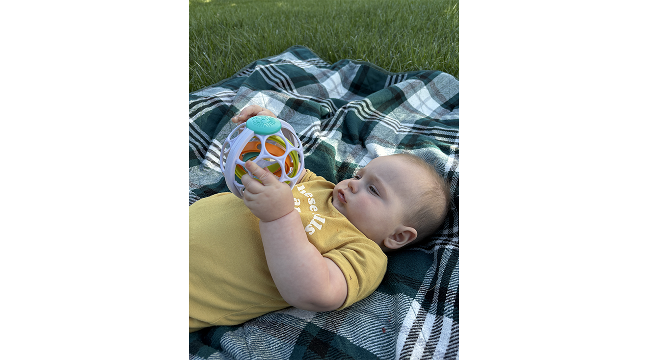 The ball’s lightweight design means it won’t hurt if dropped, and its durable plastic frame can withstand plenty of chewing and tossing. Chantelle noted it wipes clean easily, though the interior can’t be reached. Overall, she found it to be “a fantastic toy option to practice fine motor skills”—one that will only grow more engaging as baby moves from early grasping to crawling.