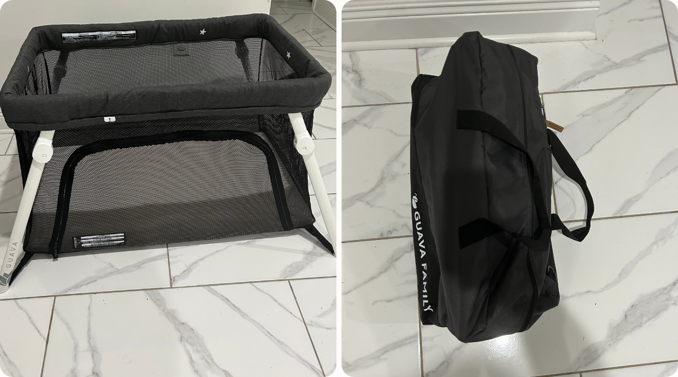 At 15 pounds, the Sleep & Go is lighter than many other full-sized travel cribs on the market, which is a big deal when you're already lugging other gear like suitcases, a stroller, a car seat or a diaper bag. "I was impressed by how lightweight it felt," says our product tester, Jennifer W who found it was light to move around the room when set up as well as when folded. Plus, it comes with a waterproof carry bag and strap for easy toting, which Jennifer loved. βThe strap of the carry bag was the perfect length and made transporting it comfortable and easy, whereas other similar products can feel awkward or uncomfortable to carry,β she says. βThe carry bag felt like a quality product that will withstand being transported around regularly.β