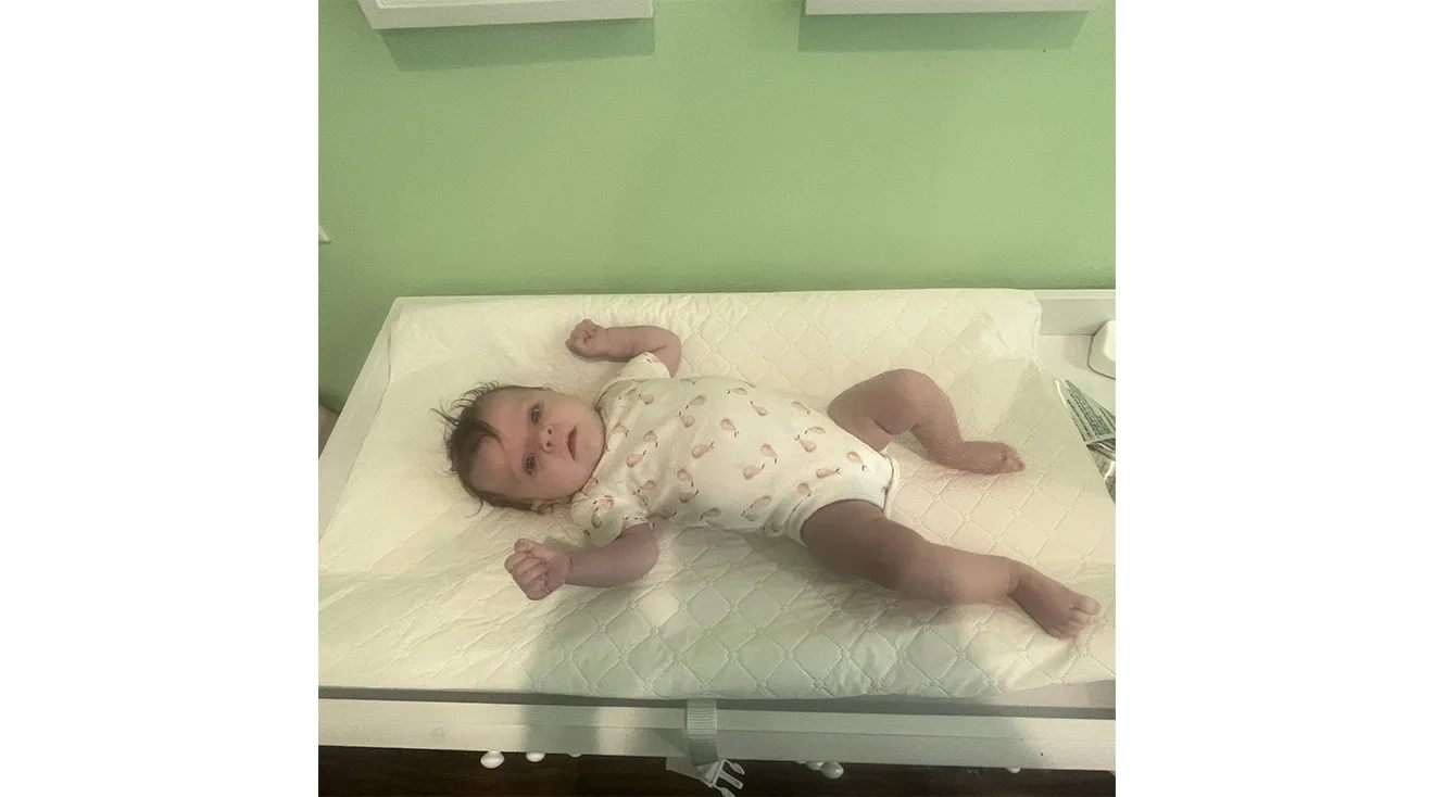 This changing pad has a soft but firm texture similar to a mattress and a contoured design, which prevents baby from rolling off the side. “I like the raised edges and optional safety strap, especially now that our daughter is getting more mobile,” says product tester Erin, who noted that the changing pad was a good size and fit neatly on top of her changing table.