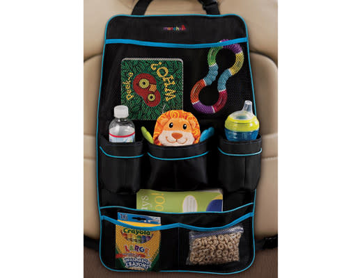 Safely stow soft books, sippy cups and other loose stuff in pockets and pouches. Most organizers just snap onto the backseat pocket like this one by Munchkin. We love that it has mesh pouches (we see you, pacifier!) and is made of durable Nylon. $10, Amazon.com