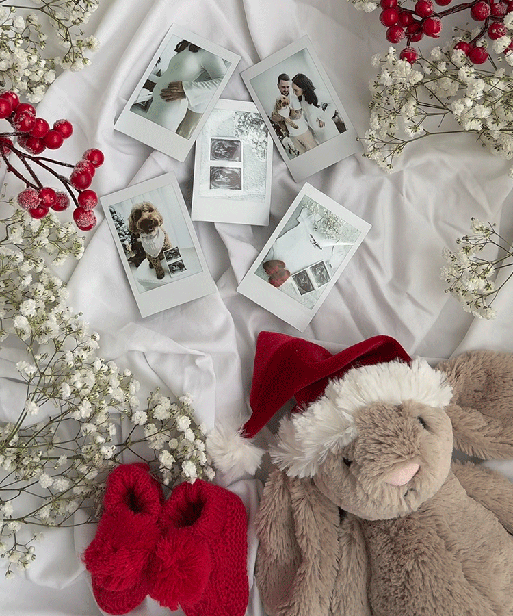 For a simple scene-stealer, snap a photo with your partner with some carefully placed mistletoe just above your growing baby bump. It’s a tender moment that hints at the kisses your little one is sure to be showered with soon!